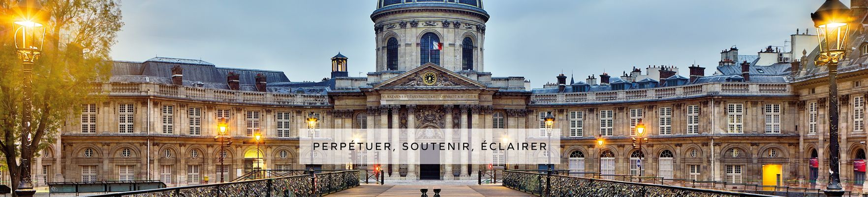 Créé en 1795, l’Institut de France a pour mission de proposer aux cinq Académies (française, inscriptions et belles-lettres, sciences, beaux-arts, sciences morales et politiques) un cadre harmonieux pour travailler au perfectionnement des lettres, des sciences et des arts, à titre non lucratif. Grand mécène, il encourage la recherche et soutient la création à travers la remise de prix, de bourses et de subventions (plus de 23 millions d’euros distribués chaque année par le biais de ses fondations abritées). Placé sous la protection du président de la République, il est également le gardien d'un important patrimoine, à commencer par le Palais du quai de Conti, quatre bibliothèques dont la bibliothèque Mazarine, ou encore de nombreuses demeures et collections qui lui ont été léguées depuis la fin du XIXe siècle. Parmi elles se trouvent le château de Chantilly, l’abbaye de Chaalis, le musée Jacquemart-André, le château de Langeais, le manoir de Kerazan ou encore la villa Kérylos.